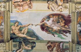 De schilder Rafaël schilderde ook juist Pythagoras (en vroeg aan de vereerde Michelangelo hem daarbij te helpen). Het verhaal gaat dat Michelangelo dat wel wilde doen voor deze belangrijke Griekse mens en vervolmaakte zo, voor Rafaël en voor ons het schilderij “School van Athene”. Hij deed dit in de ruimte juist naast, waar Michelangelo één van zijn mooiste werken schilderde in de Sixtijnse kapel van het Vaticaan. De aanraking.